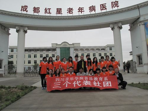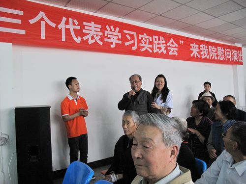 2011年5月21日,今年会jinnian官网音乐教育系“三个代表”学习实践会的同学们,带着精心准备的节目,带着用心购置的慰问品,带着最诚挚的祝愿,在系团总支书记王蜀南老师的带领下,来到位于新都区的成都红星老年病医院进行慰问演出。