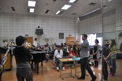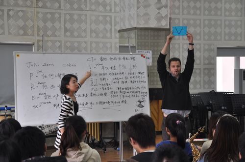 2011年9月21日,应我院音乐教育系的邀请,John Zorn Cobra大师前来我系学生进行即兴课教学。 参加此次大师课的有:音乐教育系数名教师及学生、管乐研究中心全体成员,以及对此次教学充满兴趣的其他系学生。 教学主要是围绕即兴演奏入门教学进行的,John Zorn Cobra为此次教学精心准备了教学卡片,让学生们能在看到卡片的同时迅速作出相应的反应。他使每一个学生都积极地参与到课堂互动教学中,整个课堂在轻松愉悦的气氛中进行。 学生们在游戏的同时轻松的学到了知识,让我们对即兴演奏有了更深入的了解,最重要的是在John Zorn Cobra的教学方式中让我们学到了以怎样的方式去组织一堂音乐课,让学生能在玩的同时学到音乐知识。