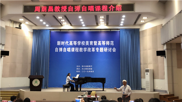2019年4月24日-26日,由四川省教育厅主办,内江师范学院承办的新时代高等学校美育暨高等师范自弹自唱课程教学改革专题研讨会暨“周荫昌教授工作室”揭牌仪式在内江师范学院举办,我院理论教研室主任李勇老师一行参加了会议。 美育的核心是培养学生感知美和创造美的能力,它在高等学校的人才培养体系中占有重要的地位。我院将以此次研讨会为契机,加强在美育实践与音乐教育方面的交流合作,博采教育精华,拓展教育视野,建强美育教师队伍,深化美育教学改革,增强美育服务社会的能力水平,为中国新时代的文化建设、文明进步做出应有的贡献。