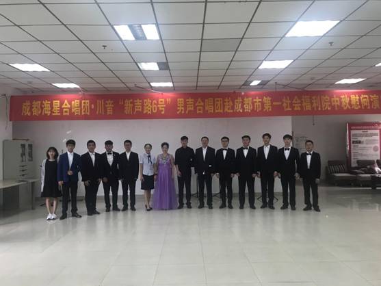 2019年9月21日,正值中秋佳节到来之际。在音乐教育学院领导们的指导和支持下,由段一帆老师带队,音乐教育学院“新声路六号”男声合唱团与成都市海星合唱团前往成都市第一社会福利院为老人们送上中秋的祝福。