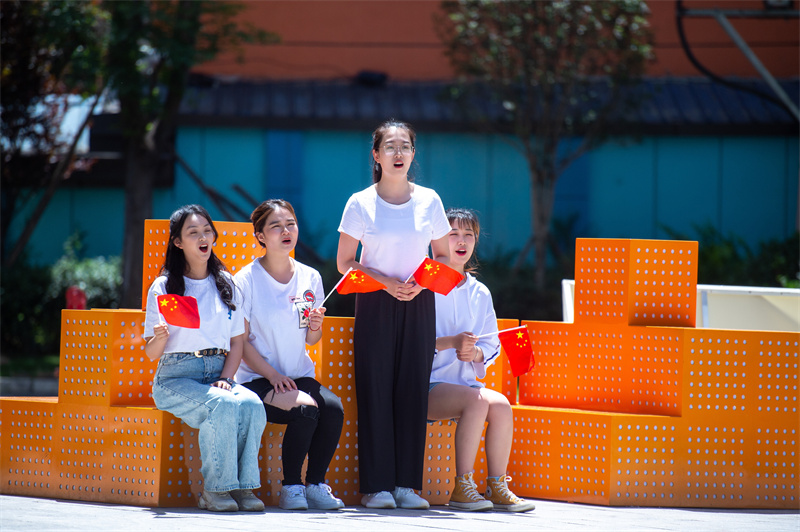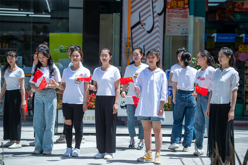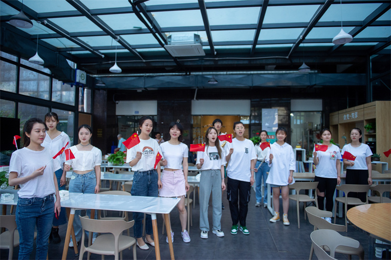 鲜艳的五星红旗、激情彭拜的歌声,还有青春靓丽的面庞,汇集成一副靓丽的青春图景、奏响了一首和谐美好的感人乐章,为夏日增添了一抹绚烂的色彩,更为中国共产党百年华诞献上一份真挚的祝福。