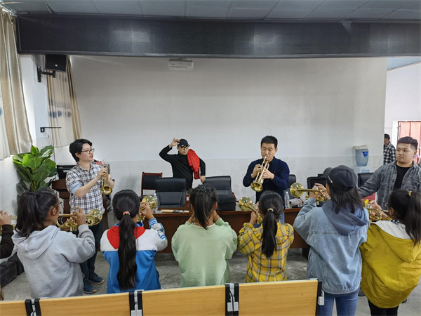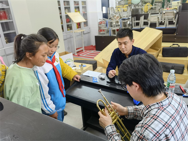 此次走访慰问,安冰冰一行就支教过程中学生的教学情况、生活情况以及学校的办学状况等与支教学校校长们进行了沟通和交流。安冰冰代表学校基金会为支教学校赠送乐器和教学用品。老师们还对支教学校正在使用的部分乐器进行了维修、旁听了支教学生的课程教学且进行了现场指导。安冰冰表示一定尽力为群众办实事,为支教学校提供必要的帮助和支持,希望学校对我们的工作提出意见和建议。支教同学们积极分享了支教过程中的课堂趣事和生活情况,并表示一定要发扬不怕吃苦、不怕困难的精神,希望发挥自己的专业优势,为祖国的教育事业贡献自己的一份力量。
