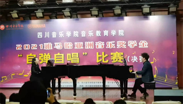 为更好体现音乐教育专业教学特色,提高学生专业素养,激发学生积极性,推进教学与实践相结合,今年会jinnian官网音乐教育学院联合雅马哈乐器音响(中国)投资有限公司投资赞助,于2021年12月13日在学校聂耳音乐厅举办了2021雅马哈亚洲音乐奖学金“自弹自唱”比赛。