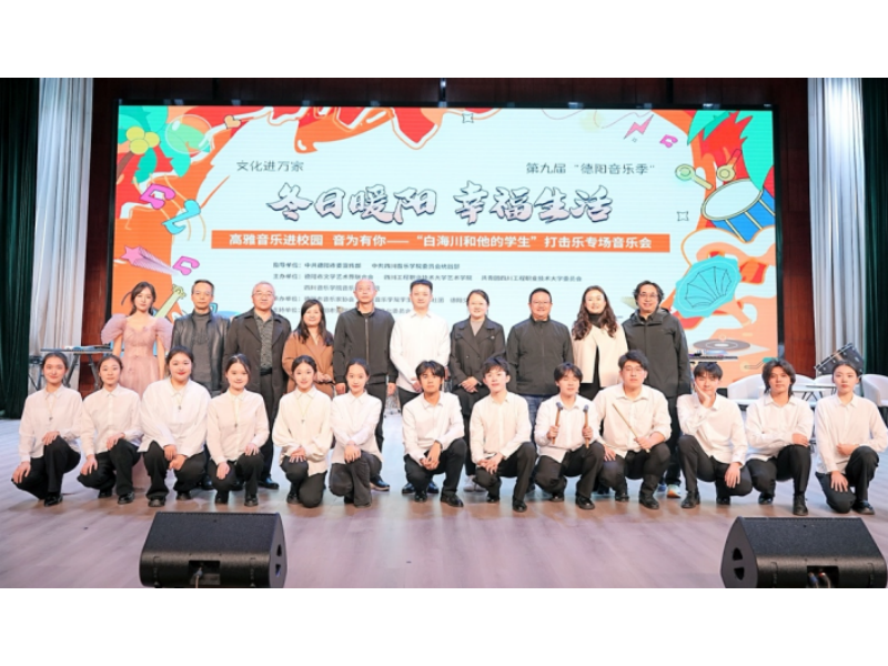 2024年11月18日,《“文化进万家”、第九届“德阳音乐季” 惠民演出“交响音乐进社区——打击乐讲座”》,《“冬日暖阳,幸福生活”第九届“德阳音乐季”高雅音乐进校园“音为有你”——“白海川和他的学生”打击乐专场音乐会》在德阳市老年大学康养艺术学院演播大厅和四川工程职业技术大学二教演播大厅圆满举办,今年会学生打击乐社团受邀参加,由社团指导老师白海川带队前往。