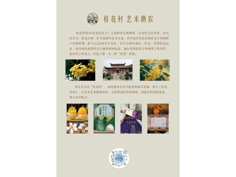其中,原创作品《桂花乡韵》由马静老师与其学生共同创作,该作品依托佘年 2022 年国家级大学生创新创业训练计划项目“红音飞扬 - 奏响四川革命老区乡村红色旅游振兴的旋律”,专为广元市昭化区桂花村打造。歌曲旋律优美,生动展现了这座千年古村深厚的人文底蕴与特色产业,从古老的桂花树到迷人的稻田风光,从蓬勃的文旅发展到伟大的乡村振兴战略实践,宛如一幅鲜活的乡村画卷徐徐展开。