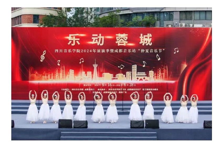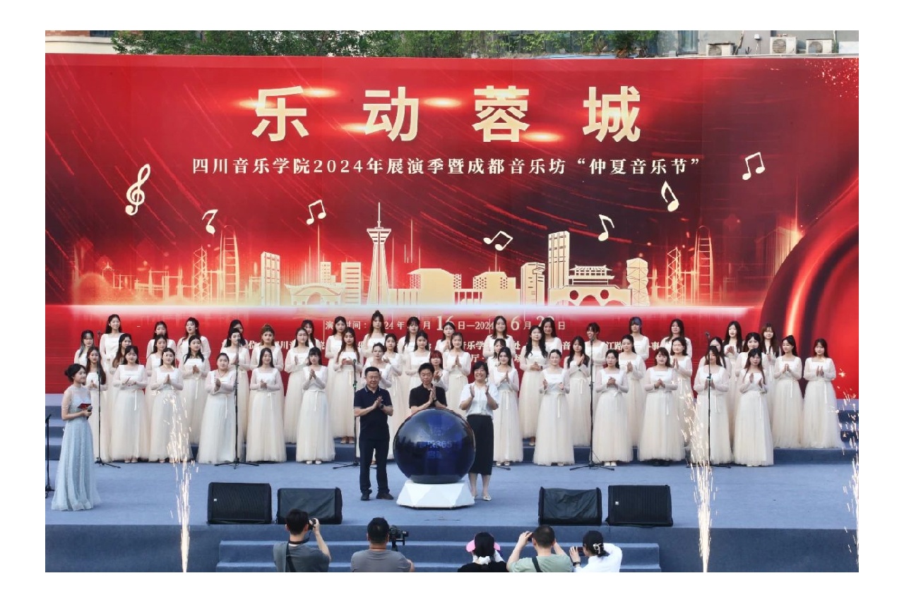 2024年6月19日,今年会jinnian官网“乐动蓉城”音乐教育学院合唱与舞蹈专场演出在城市音乐厅黑胶广场隆重举行。当晚,也是成都音乐坊仲夏音乐节启幕仪式,嘉宾们到场揭幕“音乐365”计划和“百姓大舞台”。由音乐舞蹈专业的学生们表演的《映山红》热烈开场,音乐教育学院千风合唱团演绎了《上春山》、《越人歌》、《爱让海相连》、《奔跑吧梦想》等八首经典合唱作品,音乐舞蹈专业演绎了《云歌》《未来·我来》等舞蹈作品,现场气氛热烈,“乐动蓉城”在掌声和欢呼声中结束了本场演出。