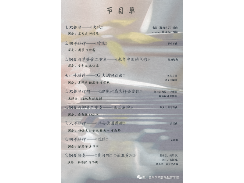 主题:杜小丽教授钢琴教学班汇报展示——重奏专场