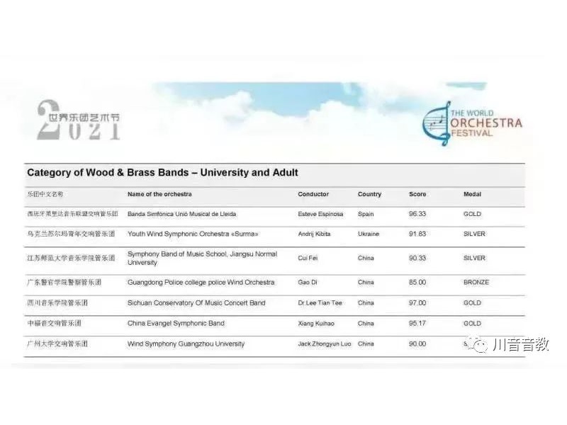 2021年,第九届世界乐团艺术节,在全世界33个国家,140多支乐团中,收获管乐团成人组金奖最高分