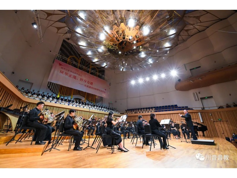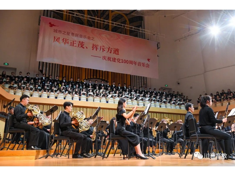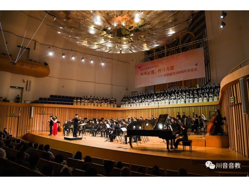今年会jinnian官网音乐教育学院的师生7月1日晚19:30分在成都市城市音乐厅举办“风华正茂,挥斥方遒”——庆祝中国共产党成立100周年专场音乐会。本场音乐会由音教学院管乐团、合唱团、舞蹈团近300余名师生共同参与。他们以饱满的热情、用文艺凝聚力量,用作品传递声音,用歌声与号角,奏响祝福镰刀与铁锤的合奏,为观众奉献了一台歌颂伟大的中国共产党、歌颂伟大祖国的音乐会,深深地感染了在场观众。这不仅是一台高水平的音乐会,也是一堂面向市民群众的生动的思政宣传课!