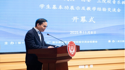 武汉音乐学院党委常委、副校长赵根成在致辞中回顾了三院校多年来经验交流的丰硕成果,并对本次活动提出三点期许:希望经验交流“深”且“实”,基本功展示“精”且“优”,成果转化“快”且“久”,让本次交流会成为美育资源整合的又一次重要探索。