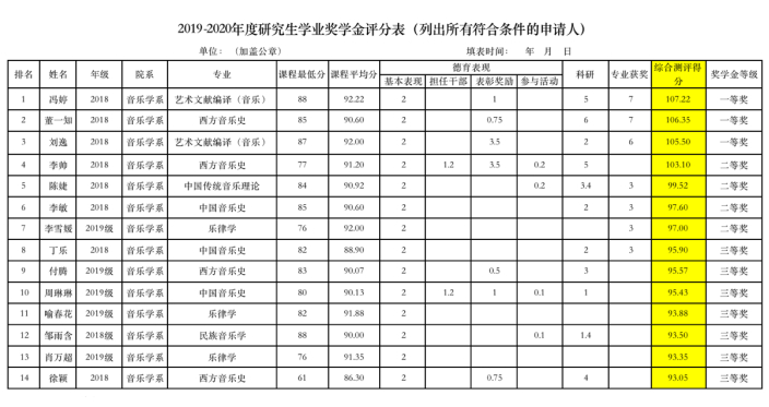 今年会jinnian官网音乐学系2019-2020学年度研究生学业奖学金获奖名单公示