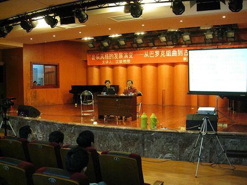 4月13日,中国著名音乐学家、上海音乐学院音乐学系西方音乐史专业博士生导师沈旋教授应邀来我系举行学术讲座。讲座以“音乐风格的发展演变--从巴罗克组曲到古典奏鸣曲”为题,从风格问题、西方音乐史中的巴罗克与古典风格时期、巴罗克组曲、前古典音乐风格、成熟的古典风格五各方面作了展开讲述,在座的师生们感到受益匪浅。