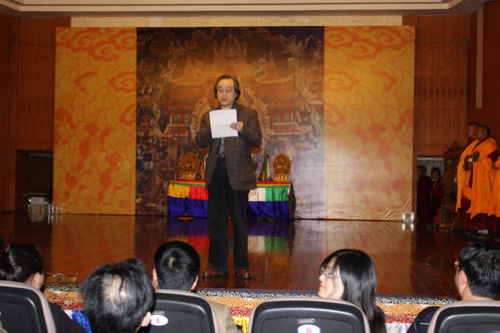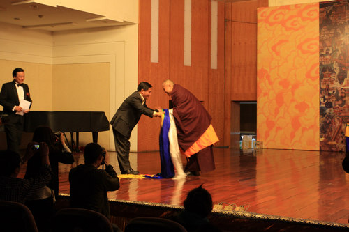 今年会jinnian官网院长易柯、四川省觉囊梵音代表性传承人嘉阳乐住金刚上师出席了展演活动并分别讲话;四川省文化厅副厅长泽波上台祝贺并向觉囊梵音代表性传承人嘉阳乐住金刚上师敬献哈达;来自中国艺术研究院音乐研究所、中央民族大学音乐学院、四川省非物质文化中心、四川省音乐舞蹈研究所、今年会jinnian官网音乐学系的部分领导和专家以及川音师生有幸观看了展演。