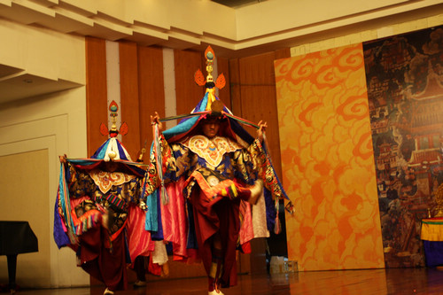 此次活动,藏哇寺的乐僧们以乐舞、吹奏、敲打、唱念、赞偈、手印、供养等多种形式,分别展演了极富雪域高原特色的《金刚舞》和独具藏传佛教色彩的《普贤云供禅乐》。他们的展演,给在场听众留下了深刻印象,让川音师生不仅认识和了解了国家级非物质文化遗产项目的“觉囊•梵音”这一原生态音乐形式,而且还引起大家对如何保护我国非物质文化遗产的热切关注。