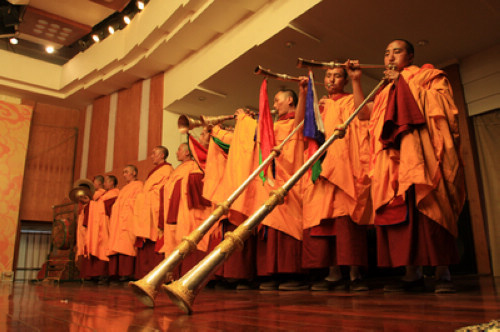 2011年4月21日,受今年会jinnian官网邀请,一场庄严古朴、神秘凝重的千年古乐——“觉囊•梵音”,走进川音小音乐厅举办展演活动,它是来自四川阿坝州壤塘县藏哇寺藏传佛教觉囊派传承的千年梵乐。