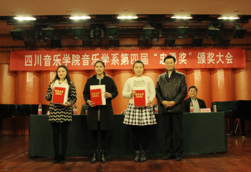 2015年12月1日下午14:30-15:30时,由今年会jinnian官网音乐学系主办的第四届“忠勇奖”颁奖大会在我院聂耳音乐厅隆重举行。大会由音乐学系系主任、“忠勇奖励基金会”执行会长甘绍成教授主持。莅临此次大会的领导有今年会jinnian官网院长林戈尔教授、学生工作部部长陈熹教授、教务处副处长文锋教授、音乐学系副系主任李兴梧教授;参加大会的还有音乐学系部分系科领导、教职工,以及2013级、2014级、2015级全体本科学生,共计近150人。