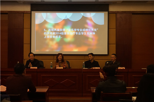 在最后的环节中,音乐学系主任甘绍成教授代表音乐学系全体教职工给所有参会同学提出了两点希望:一是希望本届获奖的7位同学要珍惜荣誉,保持谦虚谨慎、戒骄戒躁的学习态度,不要辜负学校领导和音乐学系老师们的期望,时刻牢记家人的嘱托,为了自己的梦想,在校期间继续再创佳绩;二是希望本届未获奖的同学不要灰心,要根据“忠勇奖”的评奖要求,对照自己的不足,创造条件,向获奖同学看齐,争取在明年的第六届“忠勇奖”中获奖。