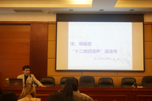 2017年4月21日上午,应今年会jinnian官网音乐学系邀请,武汉音乐学院教授,硕士导师,武汉音乐学院科研处处长,中国律学学会会长谷杰老师,在川音锦江校区梧桐楼三楼学术厅,为音乐学系师生举行了《宋、明悬编“十二律四清声”源流考辨》的专题讲座。 此次讲座由音乐学系系主任包德述教授主持。讲座前,包主任向师生们介绍了谷杰老师的学术经历与研究成果,并向他的到来表示热烈欢迎。讲座开始,谷杰老师先向我们解释了题目“十二律四清声”的含义,然后从宋初对“十二律四清声”讨论、“五音之尊卑”与十二律旋官、“十二律四清声说”的源流、“十二律四清声说”的自然之理、明代对“十二律四清声”的运用与拓展这五个部分详细的向我们阐述了“十二律四清声”的源流和运用。在讲述过程中谷杰老师应用大量古代文献资料,向我们生动形象地阐释了我国古代律学与政治、文化的密切联系。 谷杰老师的讲座生动,富有条理性,让大家受益匪浅,不仅开阔了视野,而且让同学们明白了从事音乐学研究不仅需要扎实好音乐学基础知识,更需要良好的研究方法与立体的音乐学思维。讲座在音乐学系师生的掌声中圆满结束。 审 稿:包德述 摄 影:黄诗沁