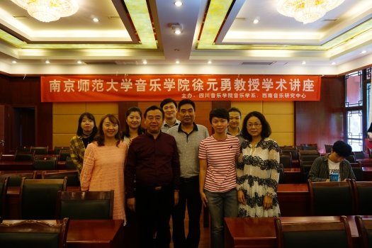 2017年9月28日,南京师范大学音乐学院院长徐元勇教授应我院音乐学系、西南音乐研究中心邀请,于梧桐楼三楼学术厅举办了题为《中国音乐史学研究方法与途径》的精彩讲座。徐元勇,博士、教授、博士生导师,现任南京师范大学音乐学院院长,国务院学术委员会音乐与舞蹈学科评议组成员,中国音乐史学会副会长。此次讲座由音乐学系主任包德述教授主持,音乐学系及其他院系百余名师生现场聆听了此次讲座。