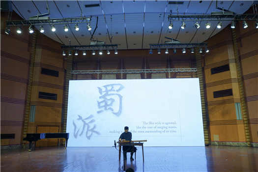 音乐会的第一个板块“巴风蜀韵”在原音乐学系学生、青年古琴家曾河弹奏的《流水》声中拉开了序幕,他的演奏运用蜀派古琴《流水》中特有的“七十二滚拂”技法,生动地表现了乐曲的各种水态,令人回味。