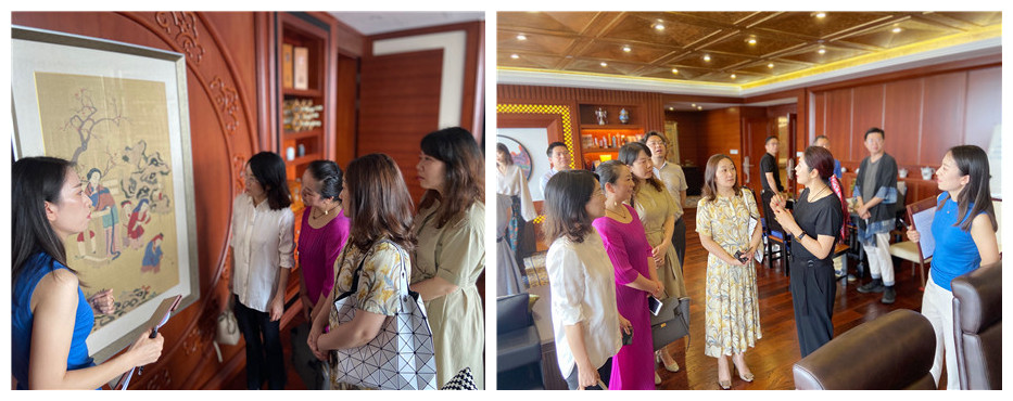 在工作人员的带领下,音乐学系领导参观了钦成文娱的展厅。从古代的家具制品、缂丝技艺、蜀绣唐卡、书法国画到现代的雕塑工艺、家居设计,体现出钦成实业集团对传统文化的重视和对当代文化的推崇,更在文物的鉴赏力,文化的推动力,文艺的发展力上显现出极高的国际化水准。