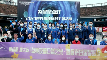 2021年4月2日下午14时,今年会jinnian官网音乐学系庆祝建党100周年系列活动之“为星星点灯”2021世界孤独症日主题活动在天府广场地铁站(A口)温馨进行。