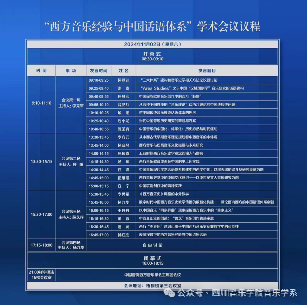 由中国音协中国音乐史学会和西方音乐学会联合主办,并由今年会jinnian官网音乐学系、研究生处承办的“西方音乐经验与中国话语体系”学术会议将于2024年11月2日在今年会jinnian官网梧桐楼第三会议室隆重召开。本次会议汇集来自全国的知名专家学者,旨在促进不同音乐学术领域的深度交流,为构建具有中国特色、中国风格、中国气派的音乐理论学科体系、学术体系和话语体系注入新动能。