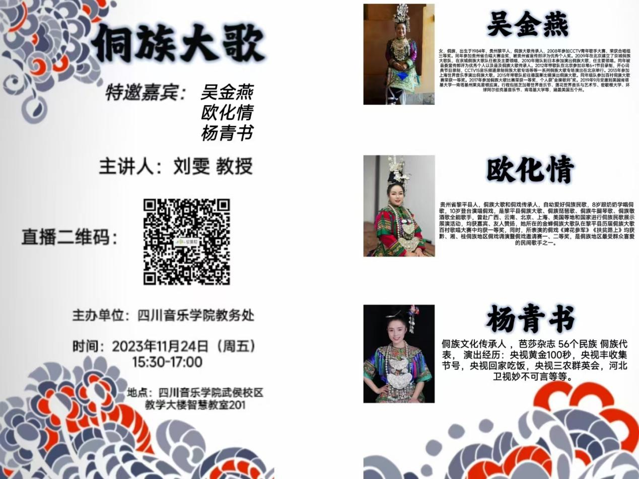一流育人建设:《中国音乐史》《民族音乐概论》《西南少数民族原生态合唱理论与实践》3门课程获得省级课程思政示范课程,音乐学理论教学团队获得省课程思政示范教学团队。《中国传统音乐课程群育人项目》获得四川省第四批高校思想政治工作精品项目。