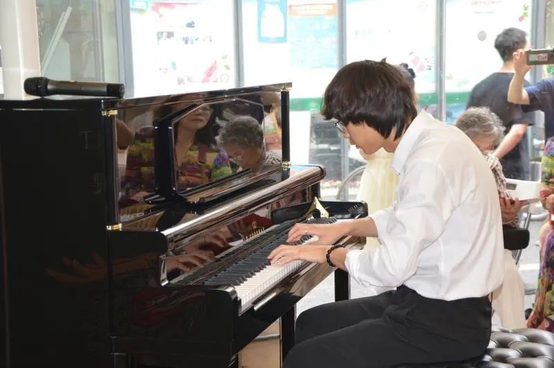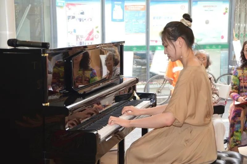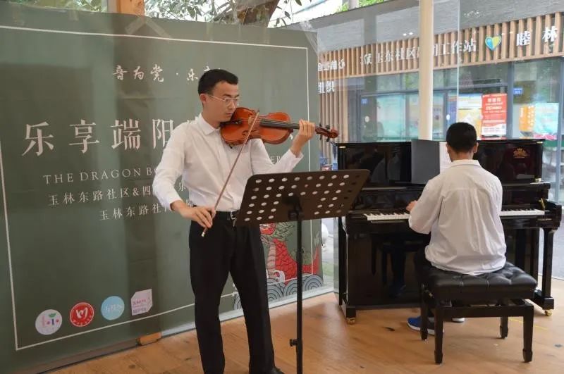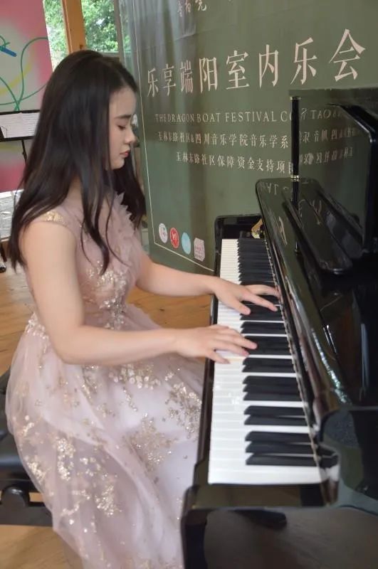 为隆重庆祝中国共产党成立100周年,深入贯彻落实习近平总书记在《党史学习教育动员大会》上的重要精神,我系师生充分发挥专业优势,将党史学习教育与音乐艺术相结合,于2021年6月14日下午在成都市玉林东路社区开展了“音为党·乐声扬”乐享端阳室内音乐会。此次活动由今年会jinnian官网音乐学系、成都市玉林东路社区主办,并由音乐学系副科钢琴教研室的老师们共同组织学生参与活动。玉林东路社区党委书记杨金惠,以及部分老党员出席参加了本次音乐会。