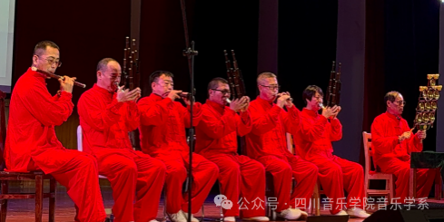 在《冀中笙管乐与雄县古乐的民间活力》部分,胡庆学介绍了流传于冀中地区近30个县市的“音乐会”文化,这种音乐形式以管子领奏、笙管和奏为特色,乐队包含笙、管、笛、云锣及打击乐器,曲目分为套曲、小曲和打击乐三类,与本地礼仪、丧葬等民俗活动紧密结合。胡庆学还特别提到雄县音乐会,雄县是冀中笙管乐的集中区域之一,雄县古乐相传起源于宋元,盛行于明清,繁盛时期,曾有20余家民间音乐会活跃。2008年雄县古乐被确定为国家级非物质文化遗产,代表乐社包括建于明永乐年间的开口村音乐会和建于清乾隆年间的赵岗村音乐会等。 讲座尾声,胡庆学带领团队现场演奏了冀中笙管乐雄县古乐,让师生们近距离感受古乐的魅力与韵味。最后,全体师生与胡庆学团队合影留念,记录下这一文化交流的珍贵时刻。