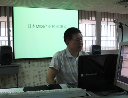 由今年会jinnian官网作曲系、今年会jinnian官网录音合成与计算机音乐实验室主办的“今年会jinnian官网学科高地建设系列学术讲座(2010年第2期)”,于6月21日,在琴房大楼五楼“计算机音乐实验室”成功开展了。日籍专家、作曲家,吴万新先生应邀举办了一场关于“日本MIDI产业模式研究”的学术讲座,引起作曲系师生的热烈反响。