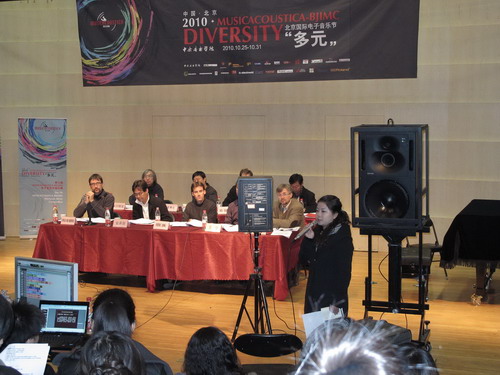 10月28日上午,第三届亚洲电子音乐国际圆桌会议在中央音乐学院成功举行。此次会议由EMSAN(电子音乐研究亚洲网络)和CEMC(中国现代电子音乐中心)联合举办,来自法国、德国、韩国、中国、日本、马来西亚的代表出席会议,并分别进行了论题演讲。应协会主席Marc Battirer的邀请,我系教师陆敏捷进行了《The Primary of Chinese Interactive Music of New Media Art》(中国新媒体艺术之互动音乐十年初探)论题的英文演讲,阐述了中国新媒体艺术之互动音乐在近十年中从“初期探索阶段”到“新媒体全面互动阶段”的历史沿革,论述了中国互动音乐的特征,引起在场国外学者与作曲家对中国互动音乐的关注。EMS(国际电子音乐研究协会)主席,法国作曲家Marc Battier对此给予了高度赞扬。该论文将作为川音第一篇以英文完成的电子音乐论文,被EMSAN研究机构在美国收录与出版。