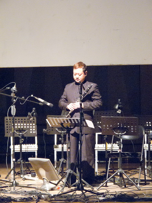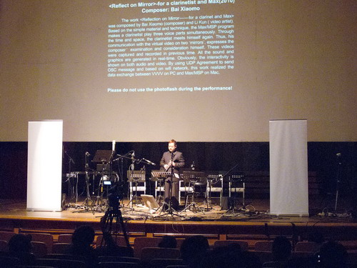 10月30日晚,北京国际电子音乐节举行了闭幕音乐会与电子音乐作曲比赛与论文比赛颁奖仪式,并进行了全程网络直播。应组委会邀请,白小墨老师与视觉艺术家李琨合作创作的互动音乐《镜子里的回想——为一只单簧管和Max而作》在音乐节闭幕式音乐会上成功演出。作曲系韩彦敏老师担任单簧管演奏。该作品是集多媒体影像、音乐与器乐演奏为一体的互动音乐作品,也是今年会jinnian官网第一个入选北京电子音乐节并公开演出的作品。在排演过程中,所有人员克服了一系列的技术障碍与困难,避免了互动音乐现场演出的风险。闭幕式演出中,韩彦敏老师在即兴演奏部分充分发挥,整个作品单簧管与程序的配合恰到好处,充分表现了其在电子音乐作品中的演奏技巧与素养。该作品受到中国电子音乐学会会长,电子音乐著名作曲家张小夫,作曲家金平以及国内外专家的一致好评,今年会jinnian官网再次给国内外电子音乐同行留下了深刻的印象。