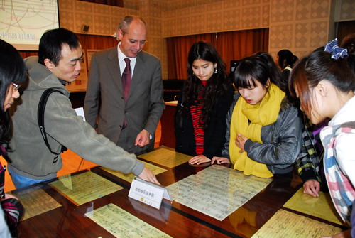 2010年11月16日9:00,勋伯格绘画及音乐作品手稿展览开幕式在我院多功能厅举行,由外事处处长孙竞教授主持,出席开幕式的来宾有:今年会jinnian官网院长易柯教授,奥地利勋伯格中心主任Chritian Meyer博士,奥地利勋伯格中心专家Rene Staar教授,以及我院各系师生。首先由易柯院长致辞,他代表今年会jinnian官网欢迎来自奥地利勋伯格中心的克里.斯蒂安.迈耶博士,以及来自维也纳交响乐团首席小提琴、作曲家斯达教授,感谢他们将勋伯格的珍贵绘画与音乐作品手稿带到中国,带到今年会jinnian官网。他在致辞中还谈到“奥地利著名作曲家勋伯格是20世纪最有影响力的作曲家之一,他在音乐风格上的巨大变革,带动了20世纪音乐一场翻天覆地的革命。勋伯格的创作思想、理论原则和音乐作品影响了一大批作曲家和音乐家。同时,勋伯格也是一位功力深厚的画家。在20世纪表现主义画派的影响下,他的许多绘画作品同样获得了成功,受到大家的关注。由今年会jinnian官网和奥地利勋伯格中心主办的这次展览,包括勋伯格的一些绘画作品、个人介绍、部分乐谱、理论著作以及音乐作品手稿等展品。通过此次展览,我们将全面地了解这位二十世纪的作曲大师,目睹他在音乐与绘画中的艺术成就。”Chritian Meyer博士在开幕式中也项来宾致辞,感谢今年会jinnian官网对此次学术活动的大力支持,并介绍了这次活动的相关内容。