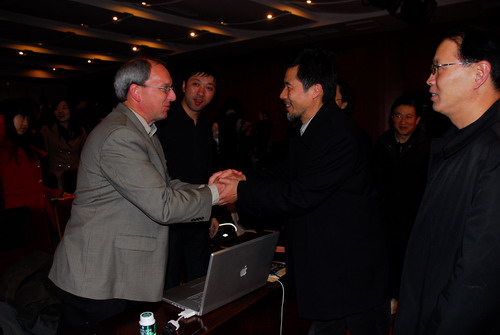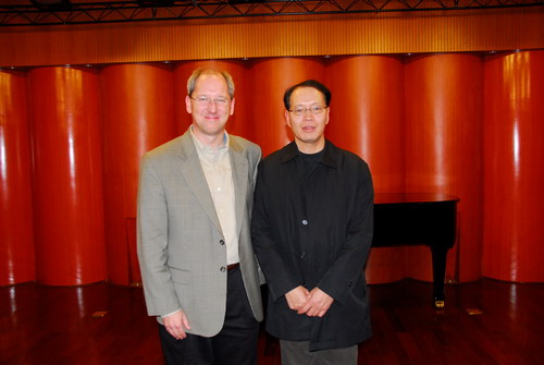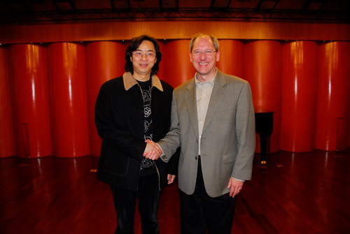 尼尔森教授的作品及其对美国当代电子音乐的诠释给听众留下了深刻的印象。第一首作品《装扮的格里——为单簧管与现场交互式电子音乐而作》以演奏家“格里”的名字命名,是一首典型的人机互动的交互式音乐。由单簧管来决定计算机音乐产生的结果。在作品的演奏过程中,单簧管演奏家会对作品的演奏进行很多随机的选择,而计算机在“倾听”单簧管演奏的过程中,会对演奏的每个片段做出各种响应,实现二者之间的交互。其中的《愤怒之石——为多媒体影像与电子音乐而作》以及《飞翔的想象——为烟火表演与磁带音乐而作》这两部作品均将音乐与视频结合起来,打开了人们的听觉、视觉空间。音与画带给人们无尽的想象,“看得见的声音”在这两部作品中已成为可能。最后一首作品《波的折射——为吉他与磁带音乐而作》展现了高超的写作技巧,进一步挖掘了吉他的声音资源,对吉他演奏者提出了很高的要求,作曲家与演奏者现场完美的配合赢得了师生们的好评。