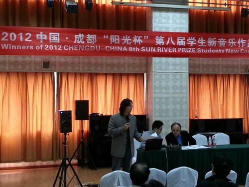 2012 CHENGDU-CHINA 8th SUN RIVER PRIZE Students New Composition Competition, sponsored by Sichuan Conservatory of Music, had been successfully concluded on Oct.18th, 2012. The Organizing committee received 78 pieces from China, America, German, Poland, Italy, Greece, Korea and other countries around the world. The ISCM President Mr. John Davis served as the chairman of jury. After the 2 selection round review, 6 pieces received the awards and bonus.