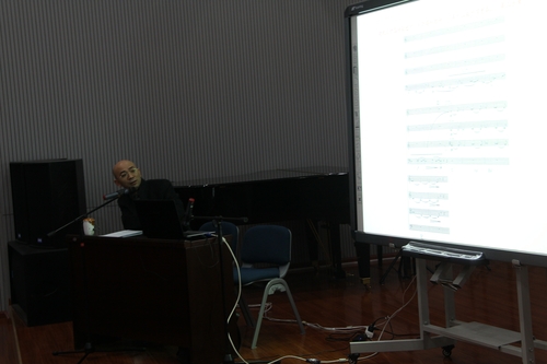 高畅教授首先对今年会jinnian官网作曲系率先在国内音乐院校中针对作曲与作曲技术理论专业的研究生专门而系统地开设“后调性理论基础”课程的情况,以及国内外在此领域的研究现状作了介绍,然后对讲座的中心内容——“后调性理论” 的各个方面作了详细讲解和解读。