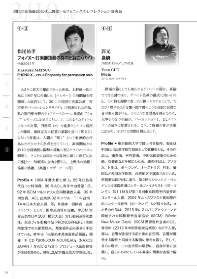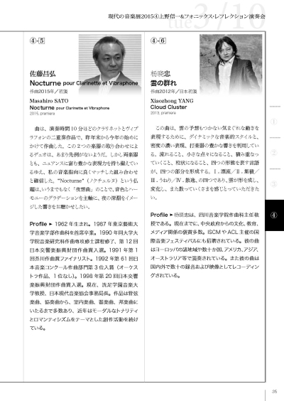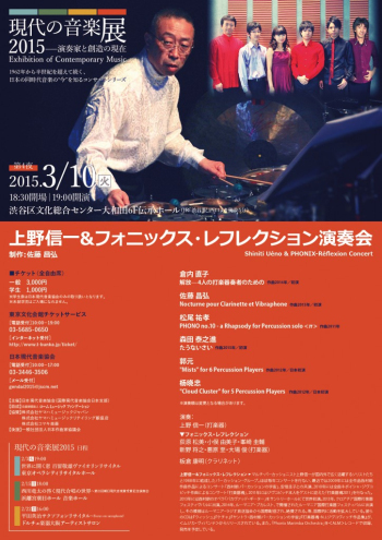 在由日本现代音乐协会(JSCM)主办以“演奏家与当代的创造“为主题的“现代音乐展2015” 系列音乐会中,我系杨晓忠教授作品《云团》、郭元教授作品《袅绕》于2015年3月10日晚7时在东京涉谷区文化综合中心传承音乐厅上演。