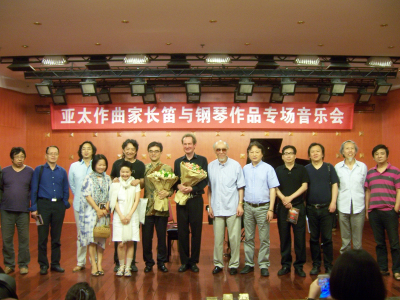 在26日下午的亚太作曲家长笛与钢琴专场音乐会中,七部优秀的作品,它们是《歌》细川俊夫、《翱翔于无极之野》贾国平、《奏鸣曲-春花之舞》高为杰、《夜巷》高平、《十二小时之桥》高平、《五首前奏曲-为独奏长笛而作》Markus Broennimann、《雨林》Jack Body,再加上Markus与高平先生的精湛演奏,博得了现场听众的阵阵掌声。短短两天时间,两场学术讲座一场音乐会,在高密度的学术盛宴熏陶下,希望作曲学习者能够从中获得收获和启发。