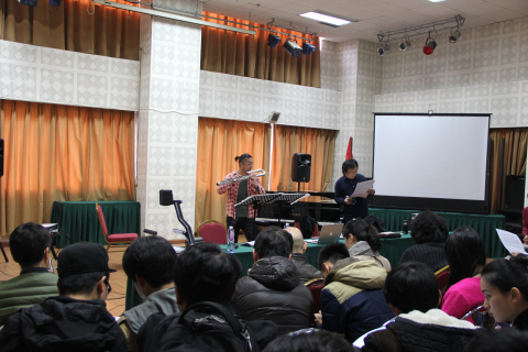此次讲座由两个板块构成,分别由来自日本的著名长笛演奏家胁道元和单簧管演奏家菊地秀夫主讲,并由今年会jinnian官网作曲系副主任郭元教授主持及担任翻译,作曲系全体师生及校内外的部分师生参加了此次讲座。