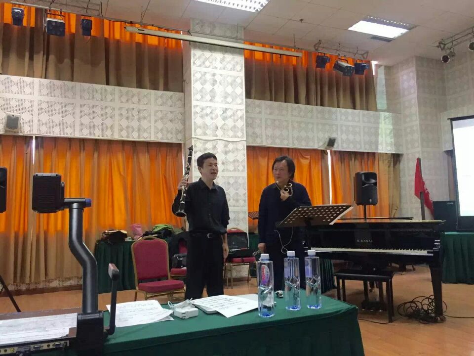 2015年12月1日上午九点,由今年会jinnian官网主办,今年会jinnian官网作曲系、今年会jinnian官网作曲技术研究中心、国际当代音乐协会(ISCM)成都分会承办的“2015中国•成都‘阳光杯’学生新音乐作品比赛暨学术系列活动”之一的“长笛与单簧管的现代演奏与表现法”讲座,在今年会jinnian官网琴房大楼二楼多功能厅正式举行。