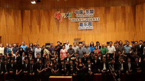 2016 年 6 月 7 日至 13 日,我院作曲系主任杨晓忠教授、作曲技术研究中心主任宋名筑教授受邀出席在中国广西南宁隆重举行的“2016第五届中国—东盟音乐周”。此次音乐周有来自中国、美国、日本、新加坡、澳大利亚、新西兰、泰国、越南、土耳其、中国台湾、菲律宾、马来西亚、柬埔寨、越南等10余个国家的知名作曲家,叶小刚、高为杰、陈怡、周龙、Achlan、Tyler Capp、Judy Bozone、温德清、杨燕迪、彭志敏、钱仁平、高平、陈丹布、叶国辉等出席了为期七天的音乐周。音乐周期间,由来自世界各地的十余个乐团分别举行了二十三场音乐会,组委会还举办了三场音乐理论研讨高峰论坛、一场中国东盟音乐研讨高端对话、六场国际音乐家大师班讲座以及当代音乐评论比赛,再次为全世界各国来访音乐家提供一个高端的交流平台并为听众奉献了一届当代音乐的盛宴。