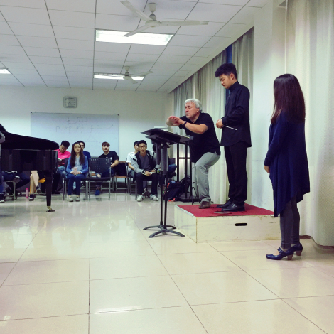 此次,爱华德教授在大师上一共向在场的老师和学生们公开指导了四名作曲系指挥专业的在读研究生,作品分别是贝多芬《第五交响曲第一乐章》、贝多芬《艾格蒙特序曲》、柴可夫斯基《第五交响曲第一乐章》和贝多芬《第六交响曲第一乐章》。课上大师从最基础的指挥技法,到如何准确地把握音乐速度与节奏,从用最简单的技术手势来表现音乐,到如何深刻地理解不同风格的作品并对其中的难点进行音乐处理做了详细地讲解。大师以严谨细致的工作态度,轻松幽默的教学方法,真诚敬业的专业修为感染了在场师生,让听课者受益匪浅。爱华德教授教育年轻指挥要用心理解、感受和表达音乐,应更多的把注意力放在音乐上,而不只是注意指挥的动作。他为大家上了一堂精彩、实用的大师课,给在场师生留下了非常深刻的印象。