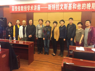学术交流的讲座部分,于2016年10月24日上午在我院梧桐楼举行,是由中国音乐学院作曲系主任高佳佳教授,为我们带来的一场主题为“斯特拉文斯基和他的晚期序列音乐”的专题讲座。 此次讲座由作曲系主任杨晓忠教授主持。在讲座中,高佳佳教授首先为我们介绍了斯特拉文斯基的创作情况,尤其是斯特拉文斯基晚期序列音乐创作的具体分期以及代表作品。之后,她针对斯特拉文斯基晚期序列音乐的创作,通过对其早期序列音乐《纪念迪兰.托马斯》、中后期序列音乐《二重卡农》、《变奏曲》等多个作品的详尽分析与纵横比较,向大家阐述了斯特拉文斯基序列音乐创作的个性化特征,以及其不同创作阶段、不同作品在序列创作技术上的差异化和技术演变。整场讲座,高佳佳教授的讲述不仅严谨、细致,其对谱面的详尽分析,更让在场的听众受益匪浅,不仅开阔了学科视野,更让师生们拓展了音乐作品研究的新思路。