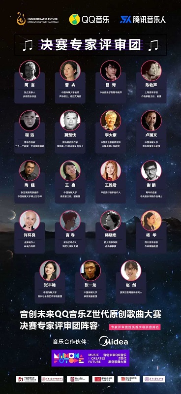 大赛组委会特邀19位来自词曲创作、编曲、演唱、录音混音等不同专业方向的专家共同组成决赛专家评审团,从创作质量、录音制作、作品演绎三个维度综合评分。