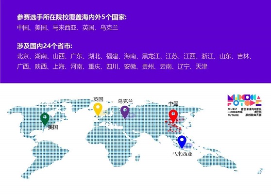 自7月4日始,历时78天,在9月19日圆满落下帷幕。大赛受到了社会各界与海内外Z世代学生群体的广泛关注和积极参与。共计收到265首原创音乐作品,选手所在院校覆盖海内外5个国家,分别为中国、美国、马来西亚、英国、乌克兰;涉及国内24个省市,分别为北京、湖南、山西、广东、湖北、福建、海南、黑龙江、江苏、江西、浙江、山东、吉林、广西、陕西、上海、河南、重庆、四川、安徽、贵州、云南、辽宁、天津。