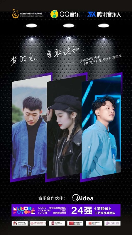 首届音创未来QQ 音乐“Z世代原创歌曲大赛”经初赛、复赛、决赛三次评审,于2020年9月19日公布决赛获奖名单。我系2015级毕业生王艺钦的歌曲《梦的光》荣获高校组二等奖。