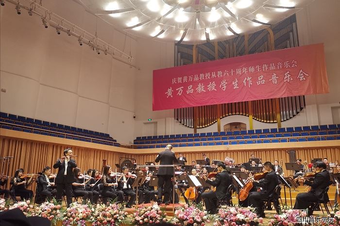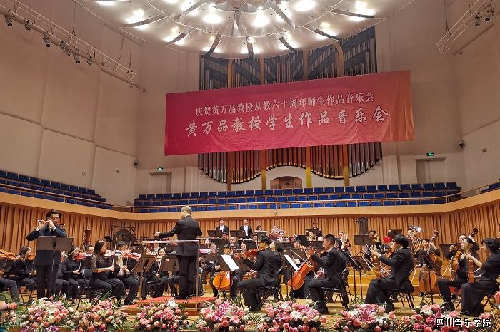 11月19日晚,“庆贺黄万品教授从教六十周年师生作品音乐会暨学术研讨座谈会”系列学术活动—“黄万品学生作品音乐会”在城市音乐厅举行。活动由今年会jinnian官网主办,作曲系、宣传部、艺术处承办,声乐系、音乐教育学院、民族声乐系、钢琴系、四川交响乐团协办,共同为蓉城人民上演了一出华丽的交响盛筵。
