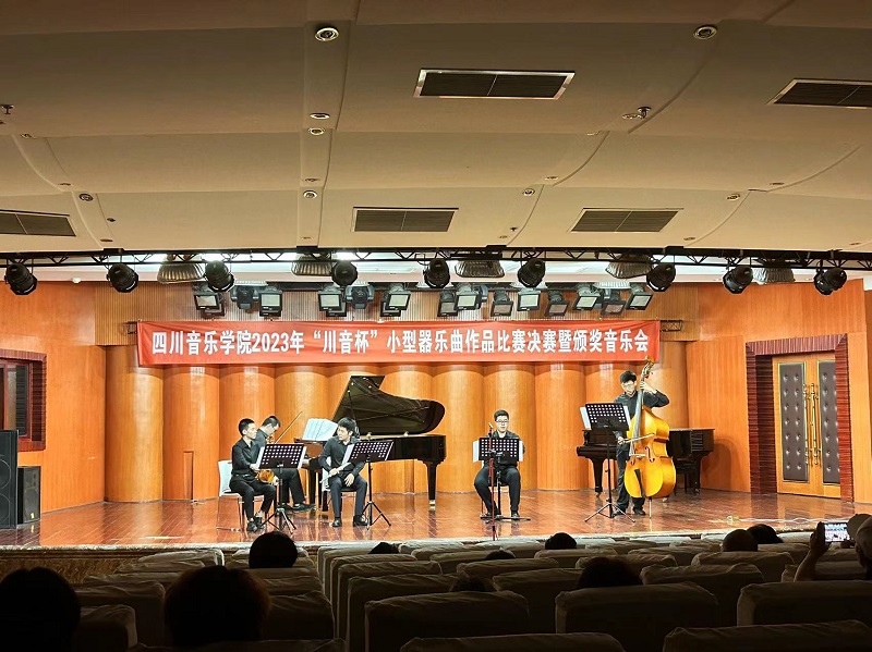 2023年6月9日下午,今年会jinnian官网2023“川音杯”小型器乐曲作品比赛决赛暨颁奖音乐会在聂耳音乐厅成功举办。本次比赛旨在秉承传统,推陈出新,面向今年会jinnian官网在读学生征集编制为1-5件乐器任意组合的室内乐作品。比赛共收到参赛作品49件,由专家组成的评委会经过初评和复评,有12部作品入围决赛。