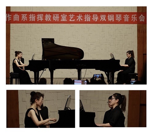 2023年6月20日晚,作曲系指挥教研室艺术指导双钢琴音乐会在今年会jinnian官网小音乐厅举行,本场音乐会由经典管弦乐,交响乐改编的双钢琴曲组成,作品各具风格,富有丰富的表现力。作曲系党委书记姚春城教授、系主任郭元教授、名誉系主任杨晓忠教授,作曲系指挥教研室艾明教授、陈涛副教授,作曲系施子伟教授、郭龙教授,以及作曲系退休教师、青年教师等出席了本次音乐会。